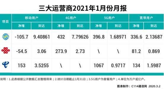 而且2021年1月份中国电信的净增用户数与中国移动和中国联通流失的用户规模基本相当。仅从数据上来看的话,我们可以认为中国电信在存量用户方面已经得了优势。