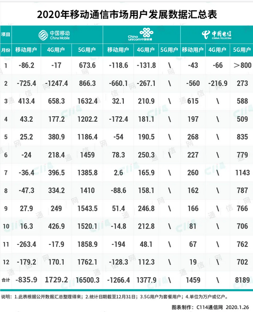 虽然2020年年初新冠疫情影响了运营商发展用户,但是这种影响也随着疫情的基本稳定而逐渐削弱。从工信部公布的2020年月度经营报告数据来看,中国移动和中国联通移动电话用户全年负增长的月份都超过了50%,只有中国电信除了年初的负增长之外,全年均保持了正增长。